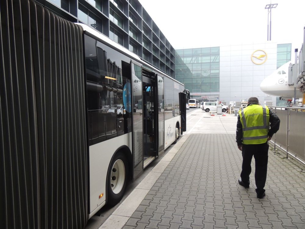 Frankfurt Airport was SO busy! You'd better not be late for boarding! I estimate the bus drove at LEAST 2 kilometers to get to our plane.