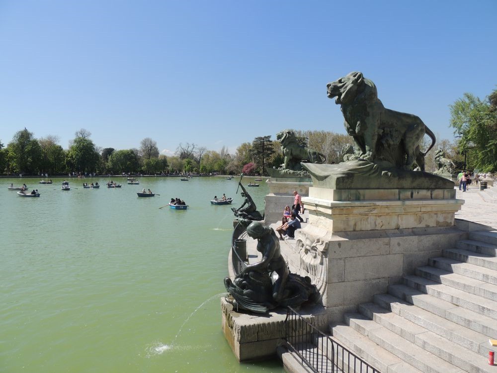A I left the Palacio Velazquez, I saw my first Spanish cat... RUDE, but very pretty! ;) I walked directly to the Alfonso XII Monument to get a better look at it. VERY beautiful, ornate sculpture and architecture. I passed the boat dock... I was surprised at how many people were on the lake during a work day. I headed out of the park via the North exit.