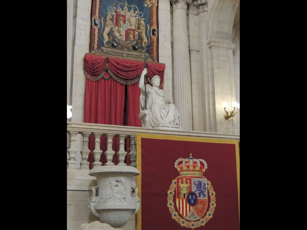 The main vestibule is made of stone... walls, floors, decorations. There is a statue of Carlos III who initiated the construction of the palace. The main staircase leads you to e first level where you are allowed to see many of the "State" rooms. Unfortunately, no picture taking allowed. I can tell you that MY favourite rooms were the Hall of Columns, e Porcelain Room, the Banqueting Hall, the Chapel, and the Stradivarius Room. Why is the latter included? Why, even years after not playing the violin, I was aching to hear how one of the two in the room sounded. I would have settled for the viola or one of the two violin cellos though... Even though I couldn't hear them, they were still gorgeous to look at.