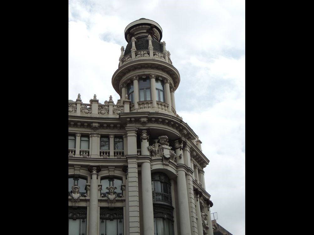After lunch, I walked down Calle Mayor to Puerto del Sol. Same route but I noticed new things. Then I took a trip down a side street in order to visit a shop selling traditional Spanish clothing... Maty! On the way I encountered a statue? a performance artist?? The guy was SO perfectly like a statue, it took awhile to decide. He FINALLY blinked. It was the only way to know! When I got to Maty, it was unfortunately closed for lunch (1:45 - 4:30) but I was able to peek into some windows to see some wonderful things. Now headed for my hostal, I noted an unusual delivery method for a store that would NEVER deliver in Canada and a computer store which is always busy whether in Spain or Canada or anywhere else I've been. I also found out how serious people from Madrid are about their dogs. The little pictured was imported from California becuase his owner just had to have one!