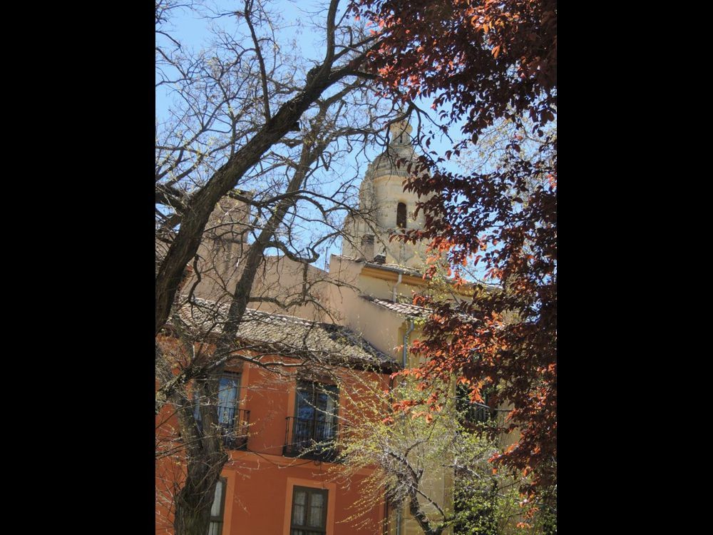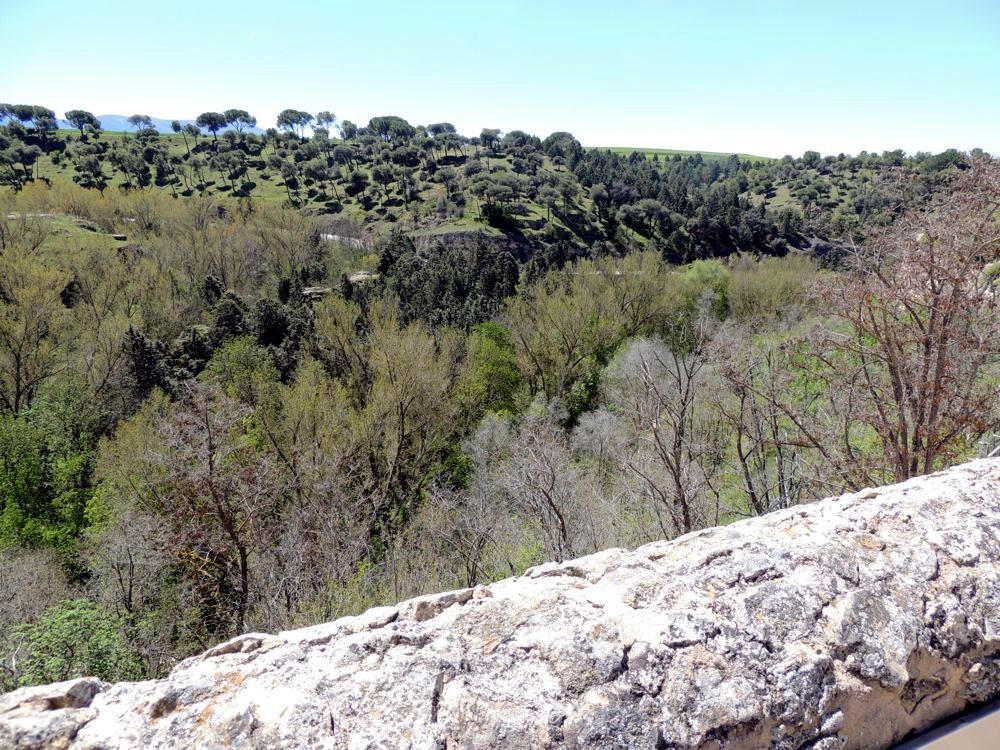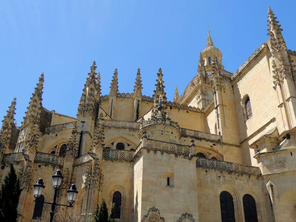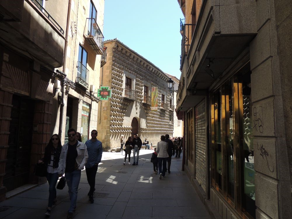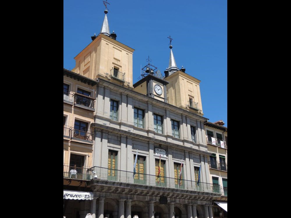 We rode into Segovia from the south. Once we were in the city, we rode right past the aquaduct. Because that aquaduct was on my list of "MUST sees", it took some concentration to negotiate away from it when all I wanted to do was look at it. We rode on cobblestone roads which zigged and zagged uphill and away from the aquaduct. I was worried that I'd never get a chance to get back there! Perhaps it was a good thing that I wasn't overthinking the roads up to the castle because they really weren't anything I'd normally tackle on a motorcycle being a flatlander and also an ashphalt type of gal. I was glad to give my bike over to Martin to park it against a retaining wall. There really wasn't a patch of level ground EXCEPT where the bikes ended up. Side saddle, standing on the left footpeg, Martin calmly and quickly zipped this way and that to place my 700 in a safe spot. We all rid ourselves of our helmets and jackets and proceeded on our individual ways to see Segovia. I first walked towards the castle - Alcazar de Segovia - to take a few pictures then to the edge of the road to take pictures towards the distant north below. Then, I went down the road (I thought) Martin had said to follow to get to the cathedral and the aquaduct. Why the confusion? The fork in the road. Not to worry. I ended up seeing a few interesting things on Calle Velarde before negotiating my way back to Calle Daioz. The Catedral de Segovia was huge. It was difficult to see differnt parts of it since you were so close to it and there certainly was no room to step back to get a better view. I suppose that's why many "official" pictures of the church are taken from a distance (down the mountain) or from an aerial perspective. One thing is for sure... the building was very beautiful... many ornate details. In its lavishness, it reminded me of the Duomo in Milan. Next up - as in most Spanish cities I've been in, Segovia had a Plaza Mayor. The square was packed with people. They seemed to be setting up an event. I had no idea how to get to the aquaduct so I found a person with a dog (Likely to be a "local") to direct me. Along the rest of the route I came across other impressive buidings and decorations. with a dog