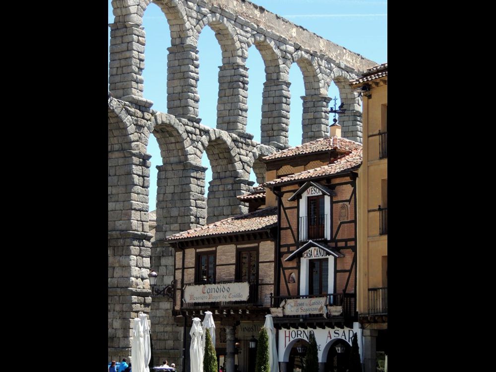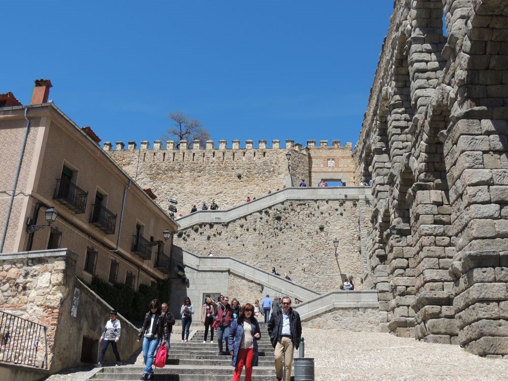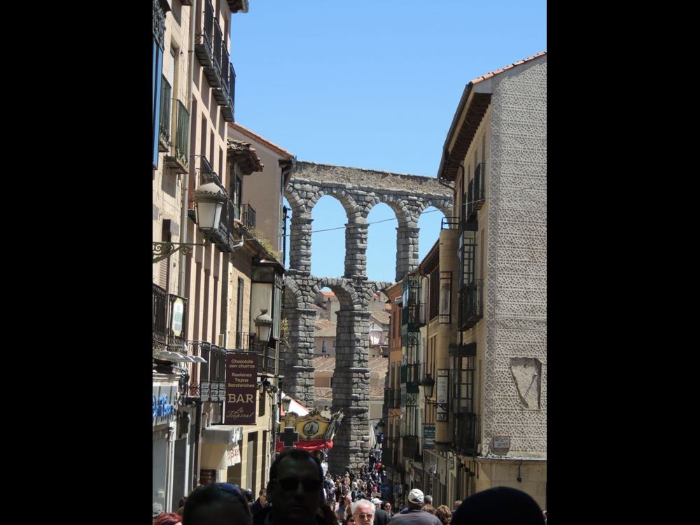 Finally! A first hand look at the Segovian Aquaduct! Acueducto de Segovia is a Roman aquaduct which was built in the first century. Using little or no mortar, it has stood with little intervention since then. At its tallest, it is 28.5 M or about 93 feet high and its 1% grade brought water to Segovia from the Rio Frio from its inception until the middle of the 19th century. SO TOTALLY impressive! I think of structures built in modern cities which haven't even survived a century of use! A couple of ladies (one of whom was from the Dominican Republic) took my picture in front of the aquaduct and I thank them for that!