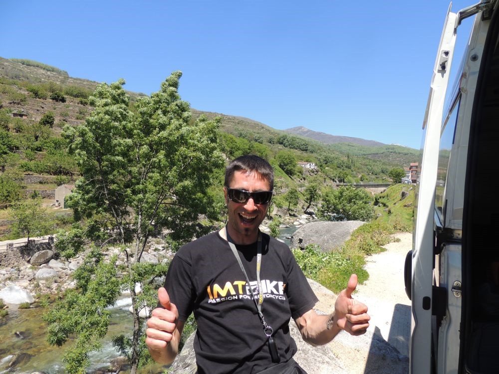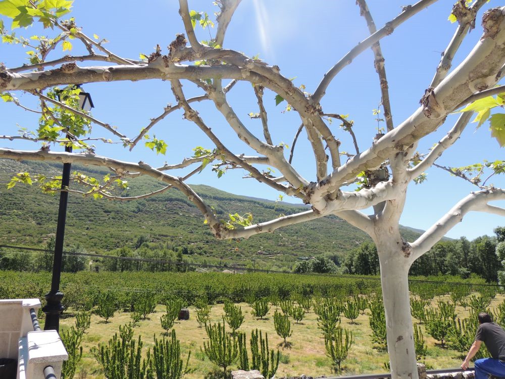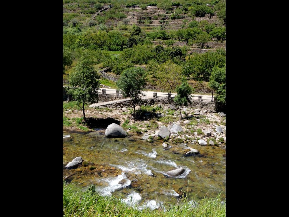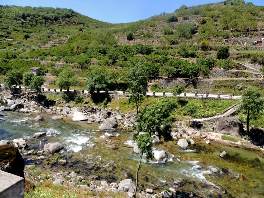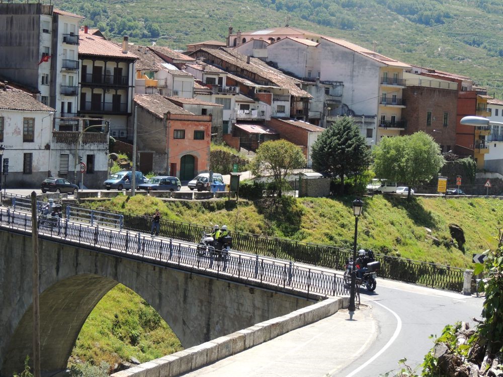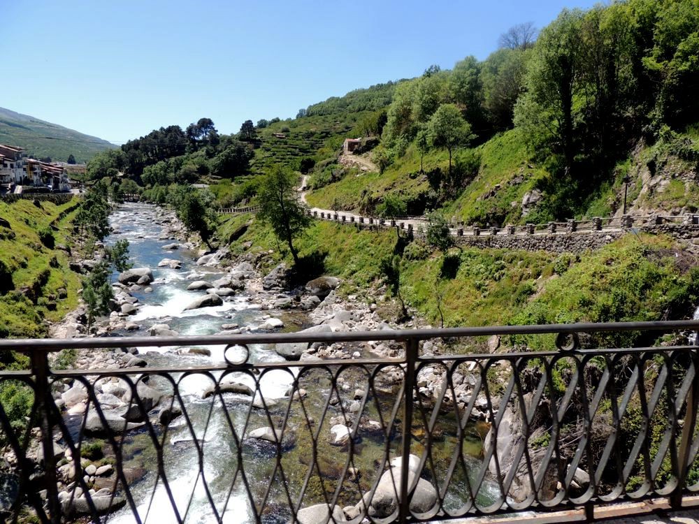We stopped for lunch over the mountain on N-110 just outside Cabezuela del Valle. I THINK the restaurant was called Restaurante el Castillo. The neat thing about the restaurant is that it backed onto a field beside the Rio Jerte full of the most interesting plants. Perhaps Martin told the group what was growing there but I missed it if he did. After lunch, Sergi and I left before the group so that Sergi could take some pictures at the bridge. The bridge went over the Rio Jerte near a waterfall in Cabezuela del Ville. I climbed a side road to take pictures of the group on the bridge from another view. When Sergi and I crossed the river in the van, Chuck was waiting there for us. He wanted to switch jackets since the one he was wearing was too warm for the