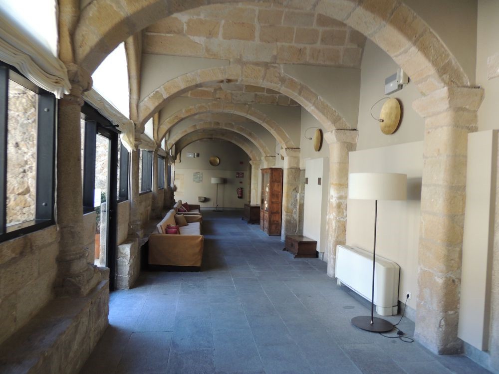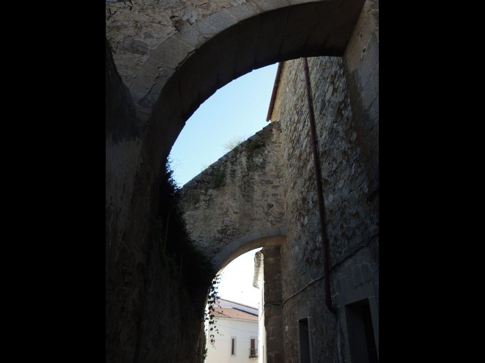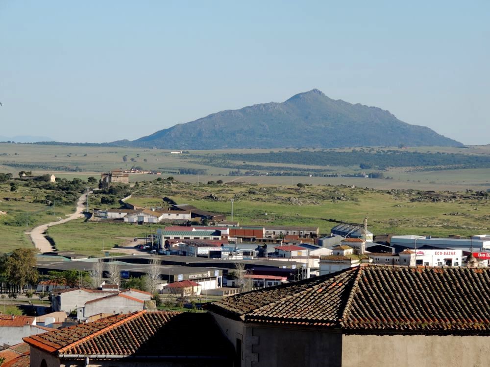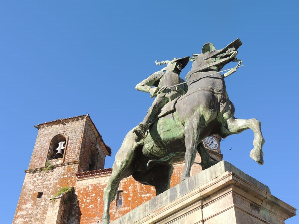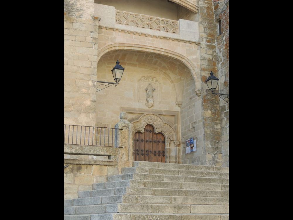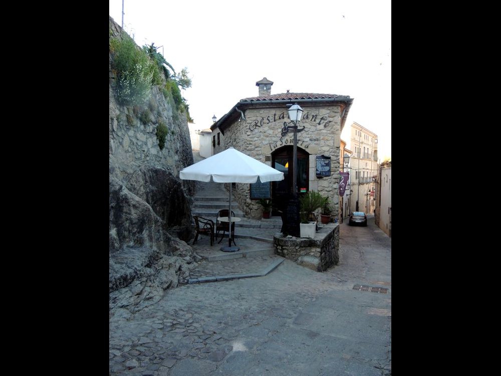 Trujillo's Parador was once a convent. A large building with a central courtyard, there were many artifacts from times past in the hallways. There were garden spaces which would have been perfect for times of contemplation. My first attempt at leaving the Parador to go and explore the town was unsuccessful because it was difficult to figure out the correct direction to travel once outside. In my first attempt at finding my way, I went down a street which gave me a view of the town walls and of the castle but I knew that the main square was not in that direction. I tried another direction but because the streets were narrow and the buildings two and three stories tall, I couldn't tell if I was even close to going where I wanted to. On each street I saw different dogs... two greeted me from their balcony... one from a garden which was above street level. The dog that gave me giggles was the one that I found in a home just by the Parador. The dog barked at my passing but was hidden behind a gate and a footed screen. I just told it "It's okay, buddy" and it crawled under the screen to greet me at the gate. Too funny! I couldn't help but to sketch him... what a character! Soon after I completed a preliminary sketch, I went back into the Parador for a map of Trujillo... much good it did me. I was STILL confused as to which way to go because the streets went at all angles and didn't seem to match up with the map. Solution: I asked a couple of kids just coming home from school (I assume by the book bags). They directed me towards the church - Iglesia de San Martin - which was on the main square. A main feature of (you guessed it!) Plaza Mayor was the bronze statue of conquistador Francisco Pizarro on horseback. At the statue I met a Spanish family on vacation. I was able to help them by taking their photo towards Palacio del Marques de la Conquista and they helped me with directions to the castle plus an explanation of the sights I was seeing in the square. My walk to the castle started on the street behind the Oficino de Turismo (Casa de la Cadena y Torre de Alfiler). You entered the gated part of the city through the Puerto de Santiago. A sharp right turn led you further up the hill to the Castillo Arabe Trujillo. From the grounds in front of the castle, you could look out over the walls to the Plaza Mayor and far beyond. On the tops of different spires and towers, more huge nests (and their occupants) could easily be seen. It was time to return to the Parador for dinner. Looking at things from a reverse angle as I retraced my steps, I realized that there was a lot I'd missed on the walk up to the castle.