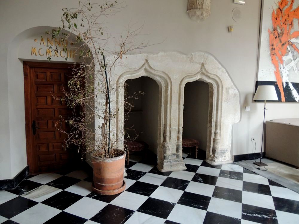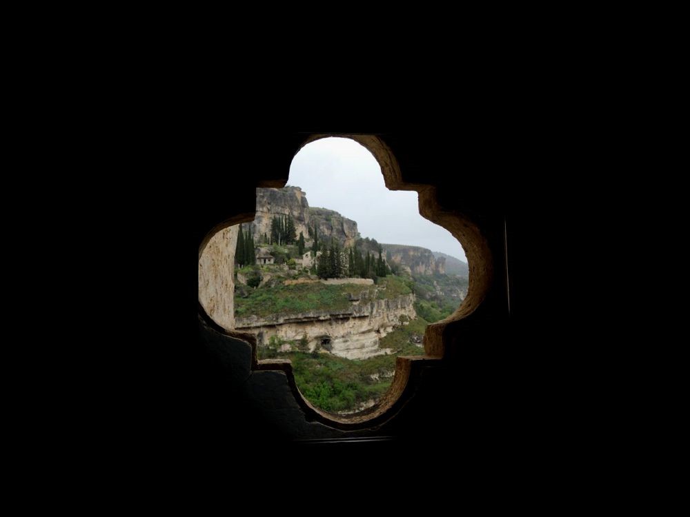 We had to ride down then up a mountain to get to the Parador de Cuenca. This parador was once a monastery and it was across a metal footbridge from the town of Cuenca. All the paradors had been beautiful but this ended up being my favourite. To me, it was just a tad classier than the others... maybe the "princess" bed helped... maybe the archways and window shapes... maybe the (mistakenly put in my room) treats awaiting our arrival... I just fell in love with it immediately.