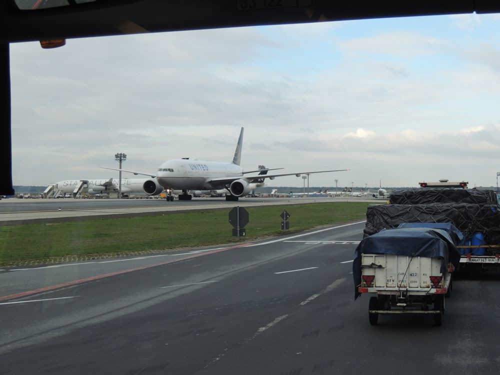 Frankfurt Airport was SO busy! You'd better not be late for boarding! I estimate the bus drove at LEAST 2 kilometers to get to our plane.