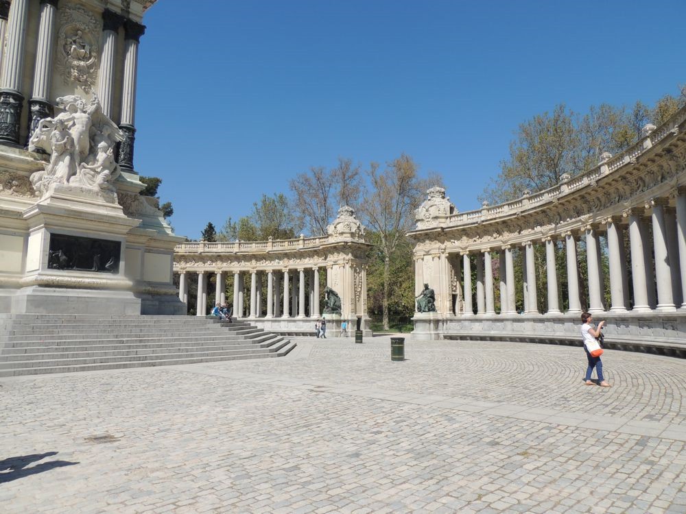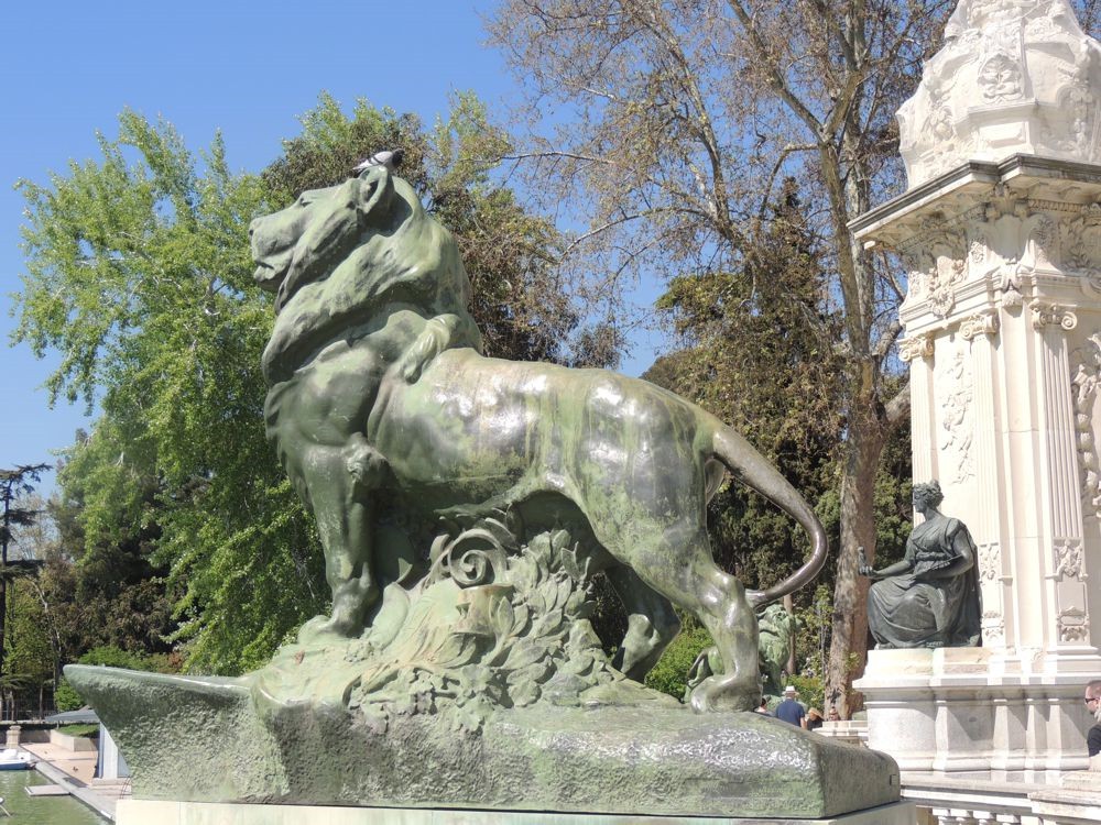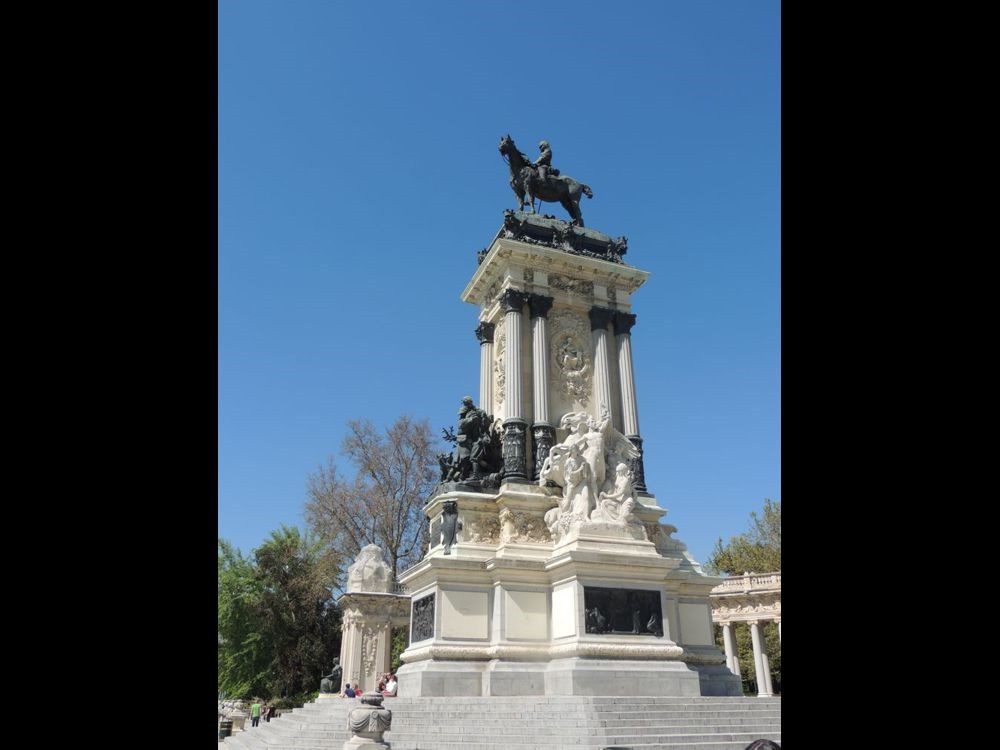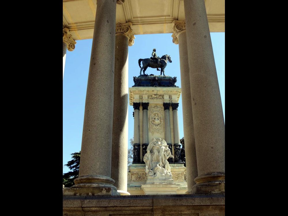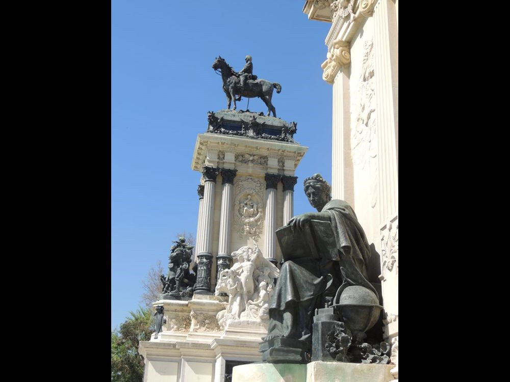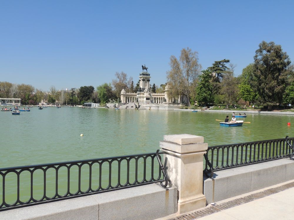 A I left the Palacio Velazquez, I saw my first Spanish cat... RUDE, but very pretty! ;) I walked directly to the Alfonso XII Monument to get a better look at it. VERY beautiful, ornate sculpture and architecture. I passed the boat dock... I was surprised at how many people were on the lake during a work day. I headed out of the park via the North exit.
