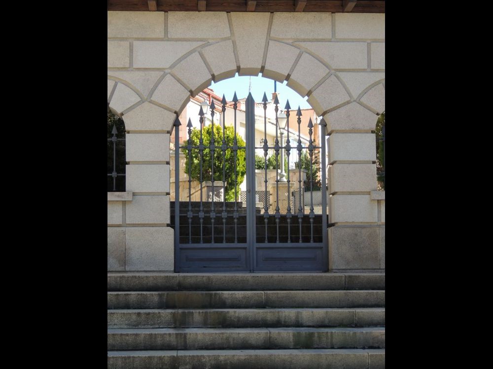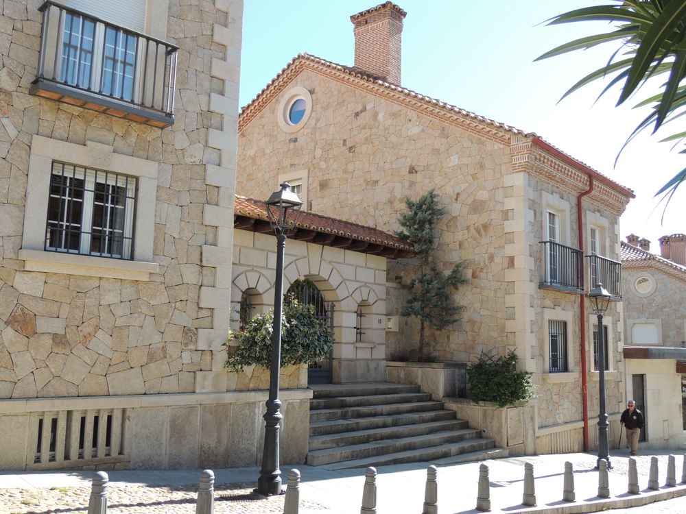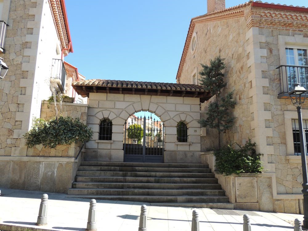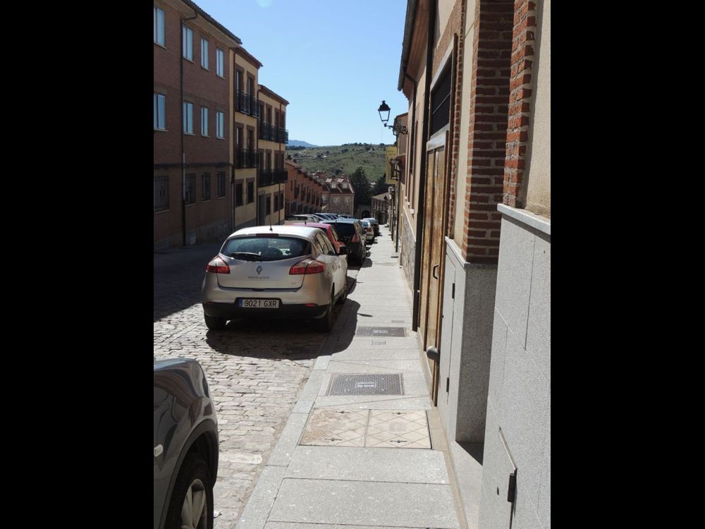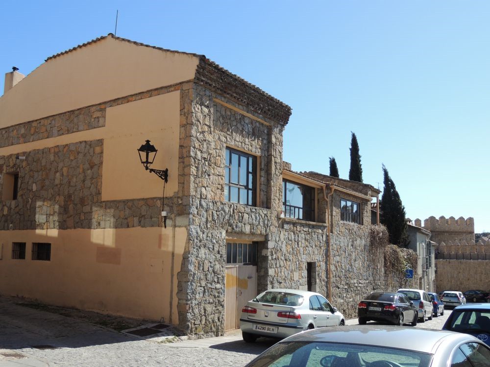 When we arrived in Avila we stopped for gas. From the station, we could see the gated city of Avila. We rode to a gate on the north side of the wall to enter and arrive almost immediately at the Parador de Avila. The Palace Piedras Albas was converted into a Parador in 1966. It's layout was somewhat confusing because the rooms have been created in the structures various nooks and crannies. The hallways and lobby display artifacts from the times the Palace was still just that. After puting my bag in my room, I grabbed my camera and went outside to see if I could find a way to travel up and along the walls of the city. Although I got some nice views, I couldn't figure out how to get up to the paths that I could see people walking so I went back into the Parador where Vicky, a college student from China taking a degree in tourism, gave me directions on how to find one of three points of access to the wall. That led me down Marques de Santa Domingo where I was able to climb a ramp near the north west corner of the wall and arrive atop the wall.