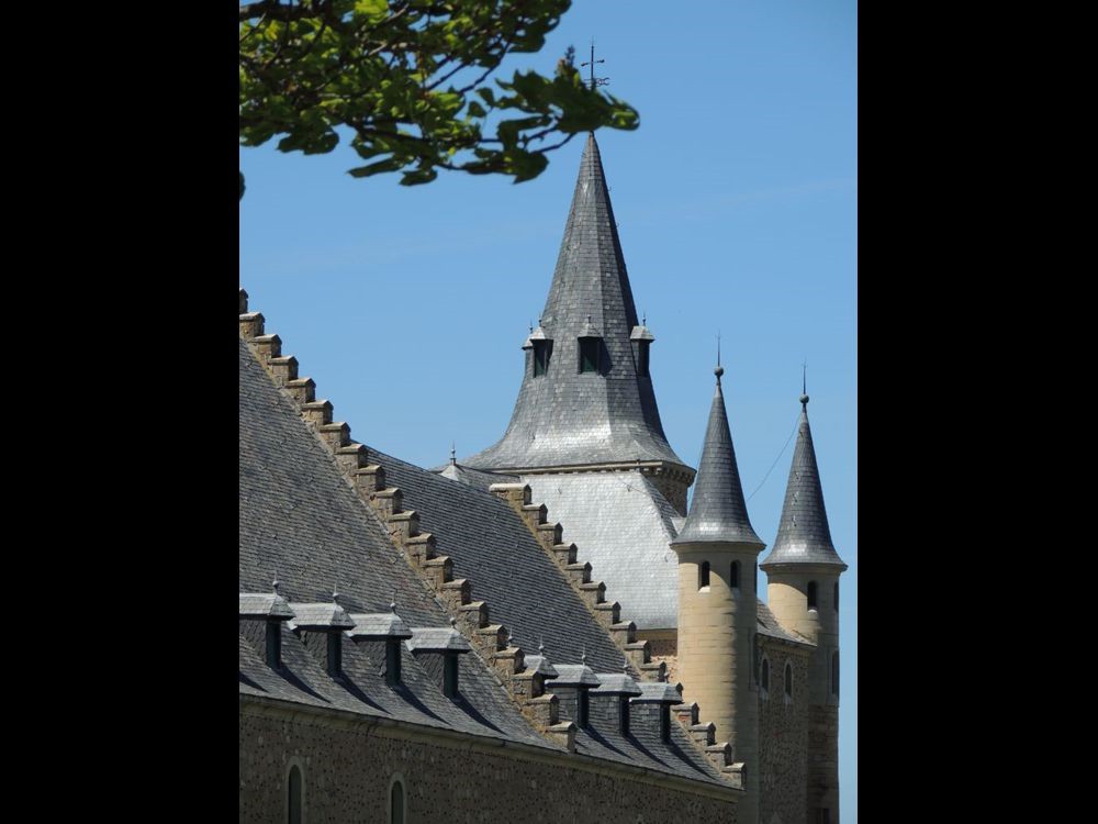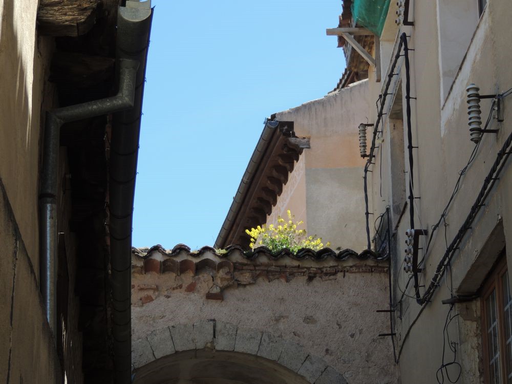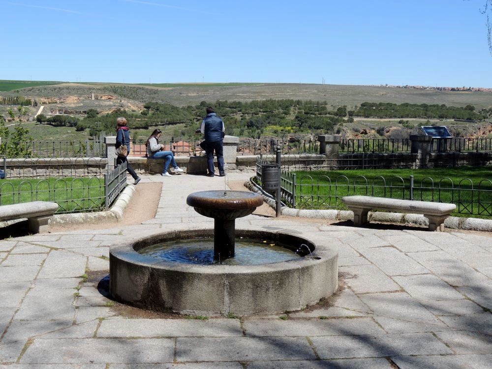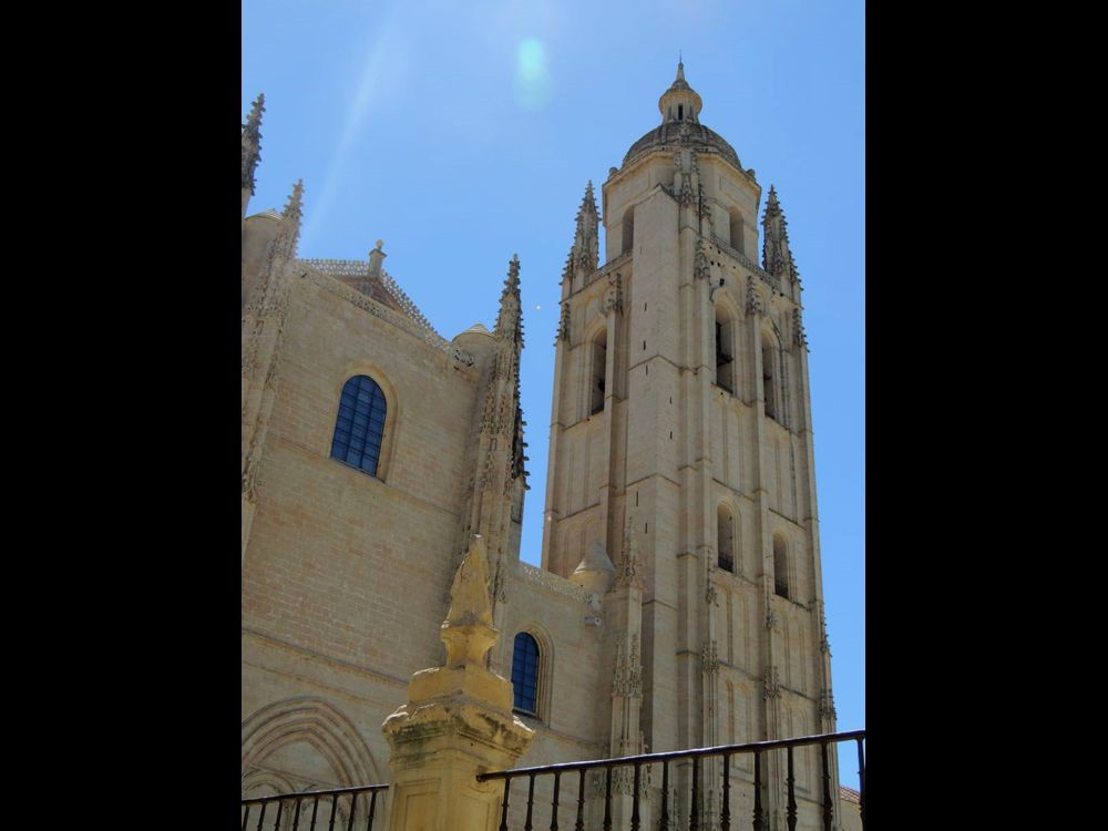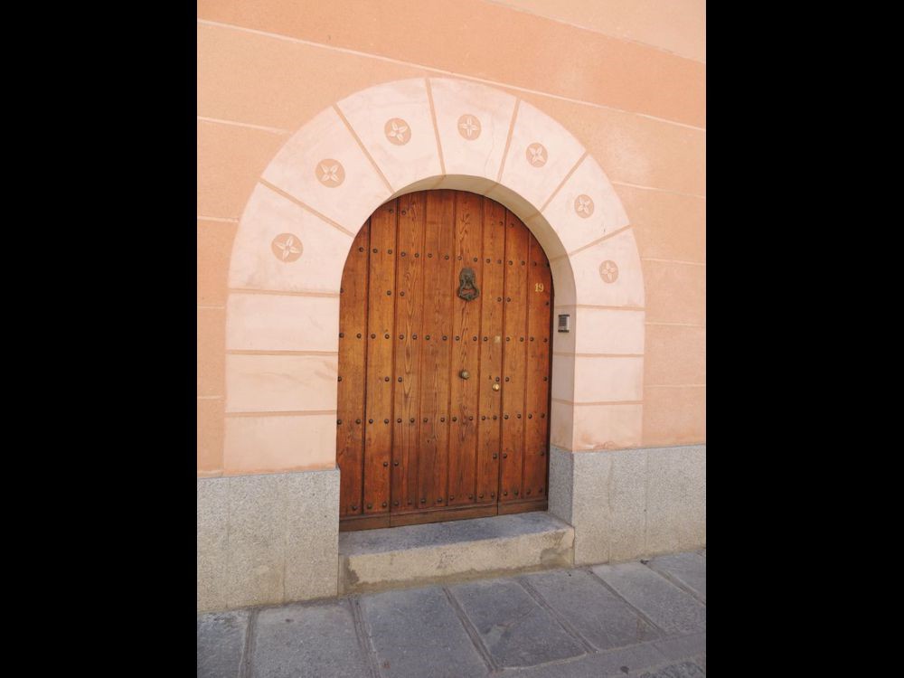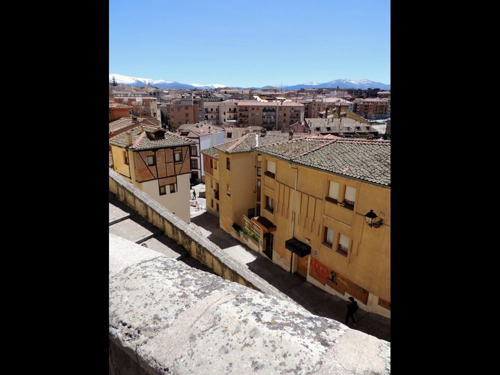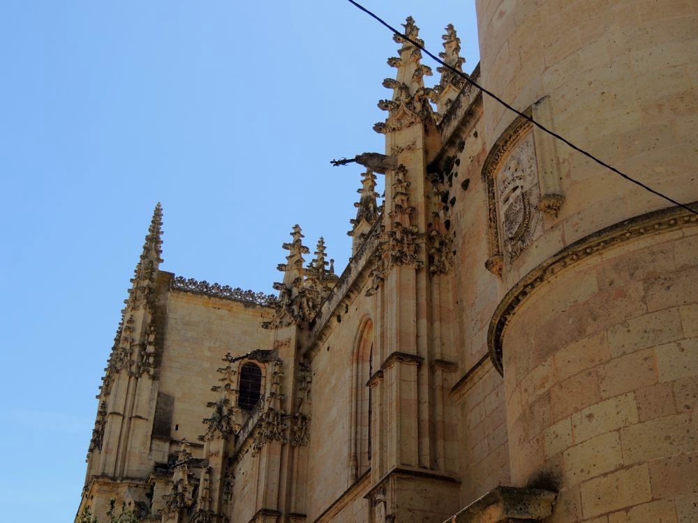 We rode into Segovia from the south. Once we were in the city, we rode right past the aquaduct. Because that aquaduct was on my list of "MUST sees", it took some concentration to negotiate away from it when all I wanted to do was look at it. We rode on cobblestone roads which zigged and zagged uphill and away from the aquaduct. I was worried that I'd never get a chance to get back there! Perhaps it was a good thing that I wasn't overthinking the roads up to the castle because they really weren't anything I'd normally tackle on a motorcycle being a flatlander and also an ashphalt type of gal. I was glad to give my bike over to Martin to park it against a retaining wall. There really wasn't a patch of level ground EXCEPT where the bikes ended up. Side saddle, standing on the left footpeg, Martin calmly and quickly zipped this way and that to place my 700 in a safe spot. We all rid ourselves of our helmets and jackets and proceeded on our individual ways to see Segovia. I first walked towards the castle - Alcazar de Segovia - to take a few pictures then to the edge of the road to take pictures towards the distant north below. Then, I went down the road (I thought) Martin had said to follow to get to the cathedral and the aquaduct. Why the confusion? The fork in the road. Not to worry. I ended up seeing a few interesting things on Calle Velarde before negotiating my way back to Calle Daioz. The Catedral de Segovia was huge. It was difficult to see differnt parts of it since you were so close to it and there certainly was no room to step back to get a better view. I suppose that's why many "official" pictures of the church are taken from a distance (down the mountain) or from an aerial perspective. One thing is for sure... the building was very beautiful... many ornate details. In its lavishness, it reminded me of the Duomo in Milan. Next up - as in most Spanish cities I've been in, Segovia had a Plaza Mayor. The square was packed with people. They seemed to be setting up an event. I had no idea how to get to the aquaduct so I found a person with a dog (Likely to be a "local") to direct me. Along the rest of the route I came across other impressive buidings and decorations. with a dog