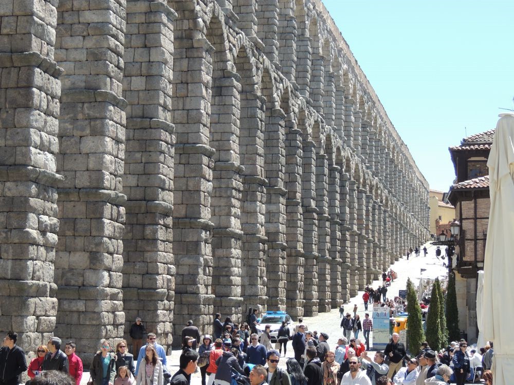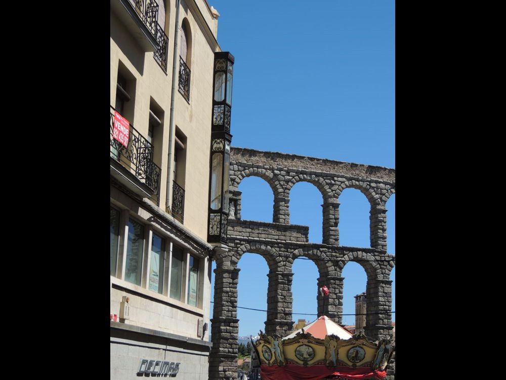 Finally! A first hand look at the Segovian Aquaduct! Acueducto de Segovia is a Roman aquaduct which was built in the first century. Using little or no mortar, it has stood with little intervention since then. At its tallest, it is 28.5 M or about 93 feet high and its 1% grade brought water to Segovia from the Rio Frio from its inception until the middle of the 19th century. SO TOTALLY impressive! I think of structures built in modern cities which haven't even survived a century of use! A couple of ladies (one of whom was from the Dominican Republic) took my picture in front of the aquaduct and I thank them for that!