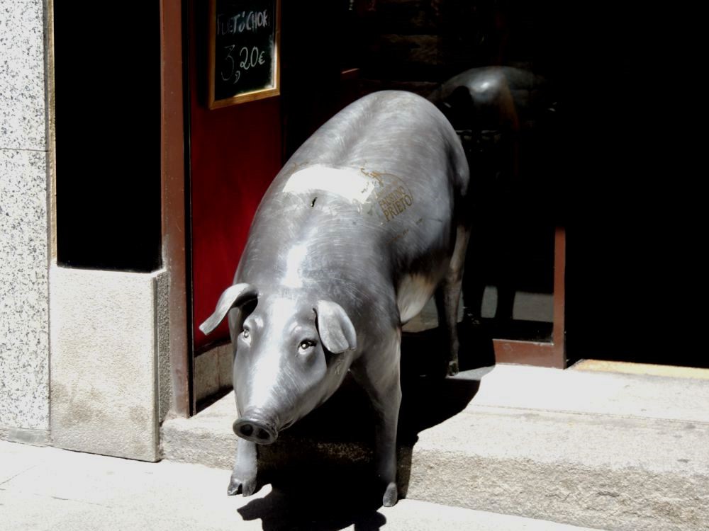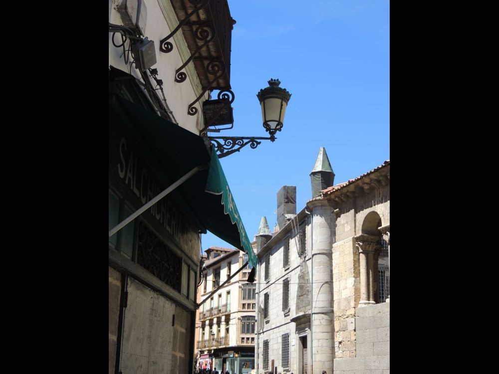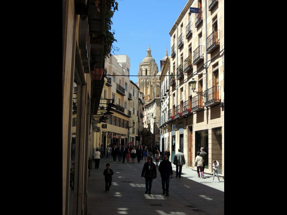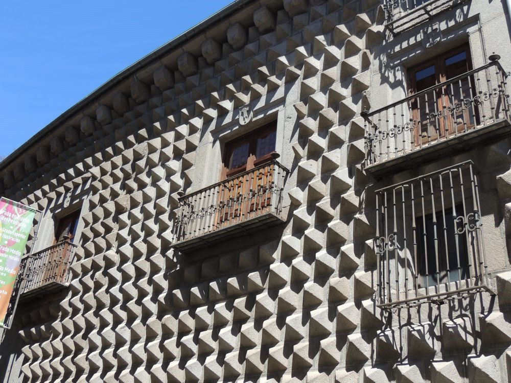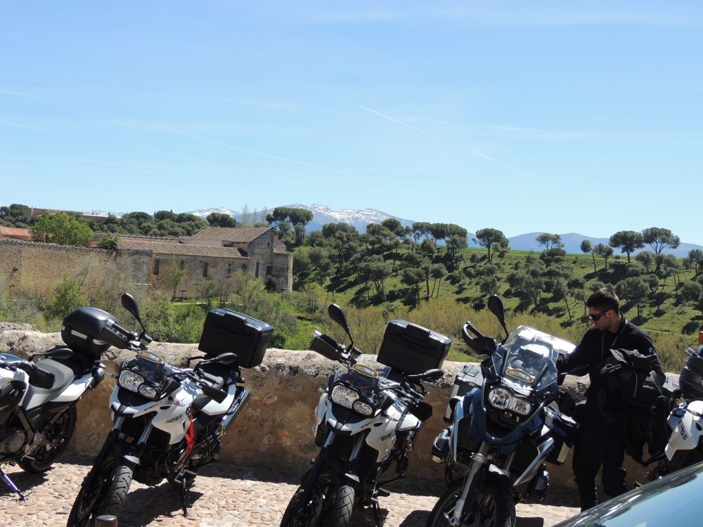 After seeing the aquaduct, I thought I should get back towards the castle as soon as possible to get a better look at it. As often is the case, even when you're taking the same route back, there's things you've missed the first time past. That certainly was true as I walked down Calle Cervantes and Calle Juan Bravo towards the main square. I stopped at a cafe in Plaza Mayor for a quick bite to eat before going back down Calle Daoiz to the castle. I took some time to check out the the Plaza de la Merced with its pretty fountain and the Iglesia de San Andreas beside it. I arrived at the castle with some time to look at its exterior more closely although not enough time to enter. One set of towers was either being repaired or cleaned but, keeping that in mind, the castle didn't quite look like the pictures I'd seen of it. On our ride out of town, it became clear why. From the road and far below the cliff it's built on, the view we see in online pictures is evident. Lucky for me, Sergi was taking pictures of us as we rode by that very spot and the picture of me passing the castle is definitely one I'll frame.