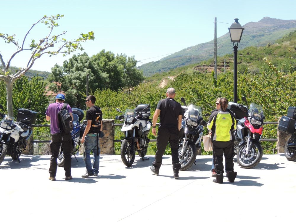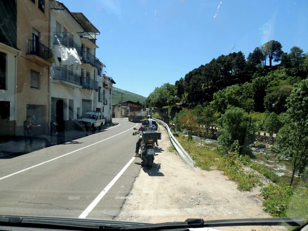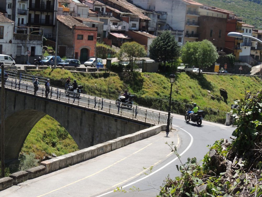 We stopped for lunch over the mountain on N-110 just outside Cabezuela del Valle. I THINK the restaurant was called Restaurante el Castillo. The neat thing about the restaurant is that it backed onto a field beside the Rio Jerte full of the most interesting plants. Perhaps Martin told the group what was growing there but I missed it if he did. After lunch, Sergi and I left before the group so that Sergi could take some pictures at the bridge. The bridge went over the Rio Jerte near a waterfall in Cabezuela del Ville. I climbed a side road to take pictures of the group on the bridge from another view. When Sergi and I crossed the river in the van, Chuck was waiting there for us. He wanted to switch jackets since the one he was wearing was too warm for the