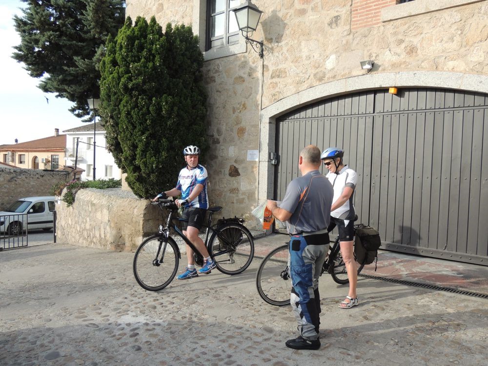 I'll always remember the Parador de Trujillo as the place that didn't want us to go. Trying to exit out of the large garage door from inside seemed impossible at first. Then someone was able to communicate (with the front desk?) to get them to open it long enough for us to get out. Then it was the automatic gate. The two people on bikes barely made it out before it shut on them (electric eye maybe didn't register them very well??). When it was our turn, Sergi missed getting the electronic eye to see us. He had to run out of the van and right back in with me close behind so it wouldn't shut on him or me.