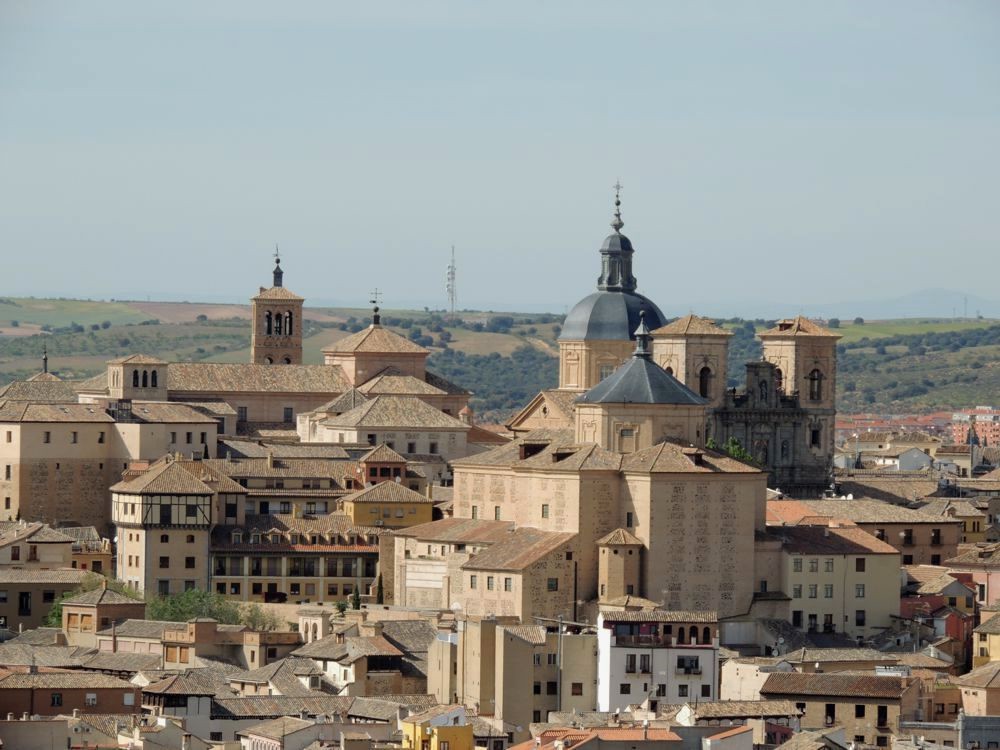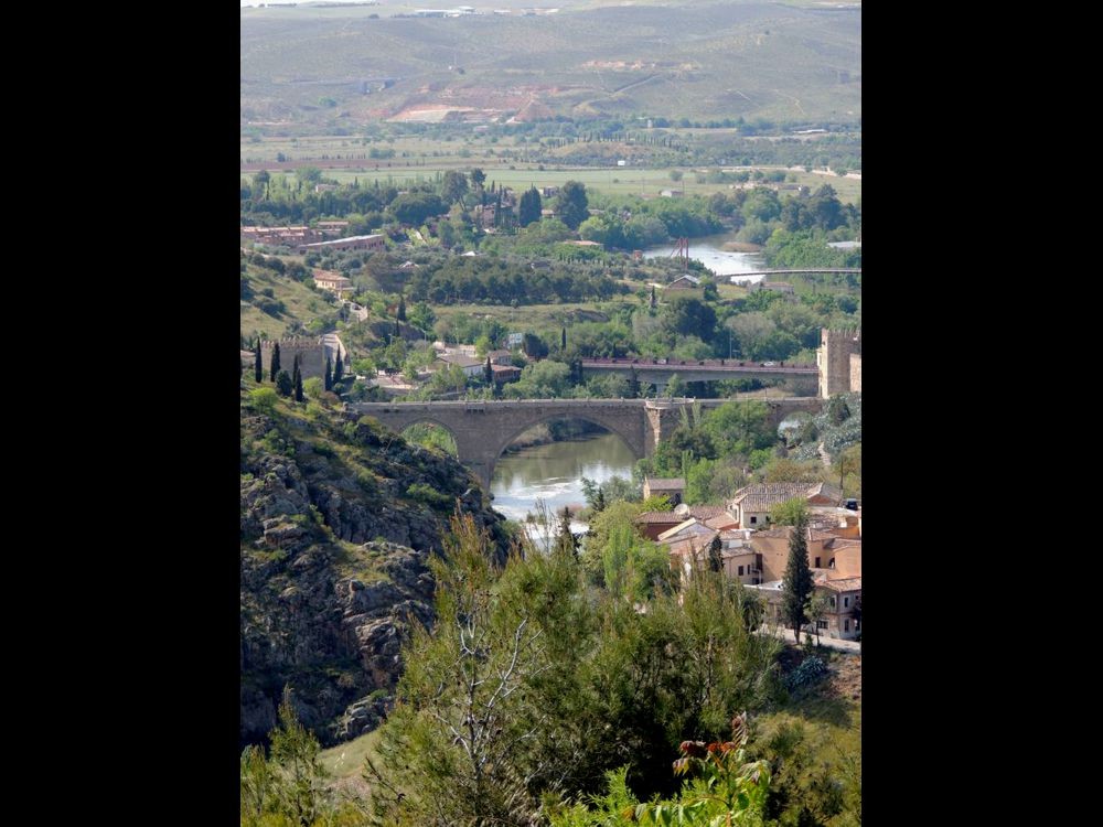 The Parador's terrace adjoined both the bar and the restaurant. Because the Parador sat on a hill to the south of the city, you had a gorgeous view of it. The Tagus River lay below the Parador, surrounding Toledo on the west, south and east. To the east of the terrace, people were sitting atop rocks enjoying the same view that we were.